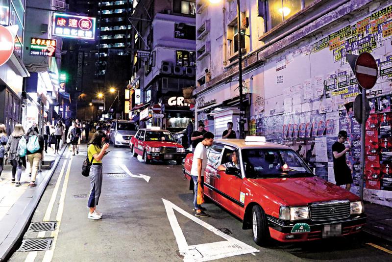 上周四「小周末」深夜十一時,蘭桂坊人流熙攘,大批「冚旗」(掛上暫停載客紙牌)的士停泊在馬路。記者在旁觀察,發現短短20分鐘內,約有十名乘客上車後,因被拒按表付費而遭趕下車。