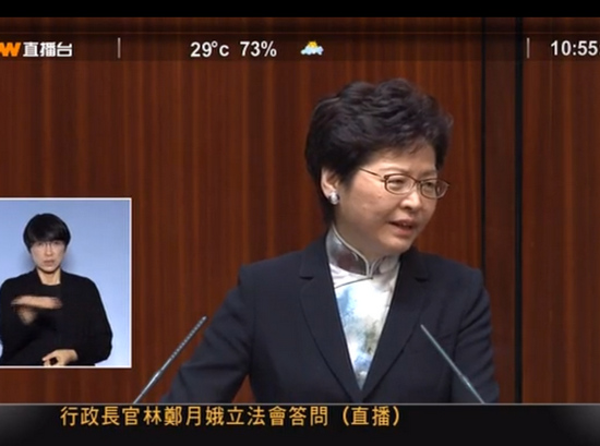 香港行政長官林鄭月娥3日出席立法會答問大會(電視截圖)