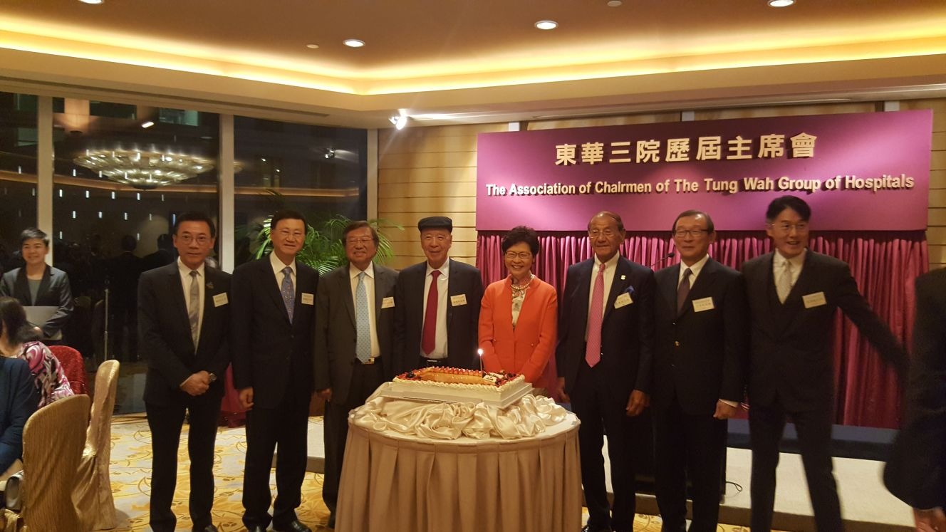 特首林鄭月娥(右四)及嘉華集團主席呂志和(左四)出席東華三院歷屆主席會晚宴(公司提供圖片)