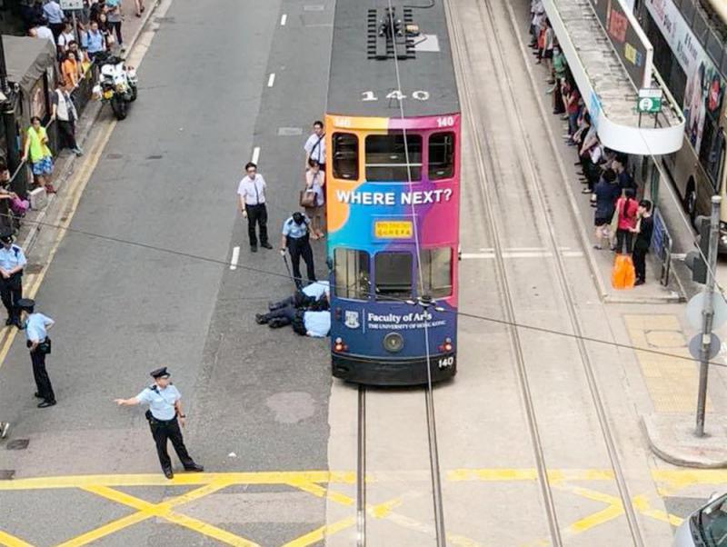 昨午三時許,警方接報有動物被困德輔道中電車底,多個警察和消防員叔叔火速趕到。原來是小貓女走了入電車底隱蔽位置,場面驚心動魄!