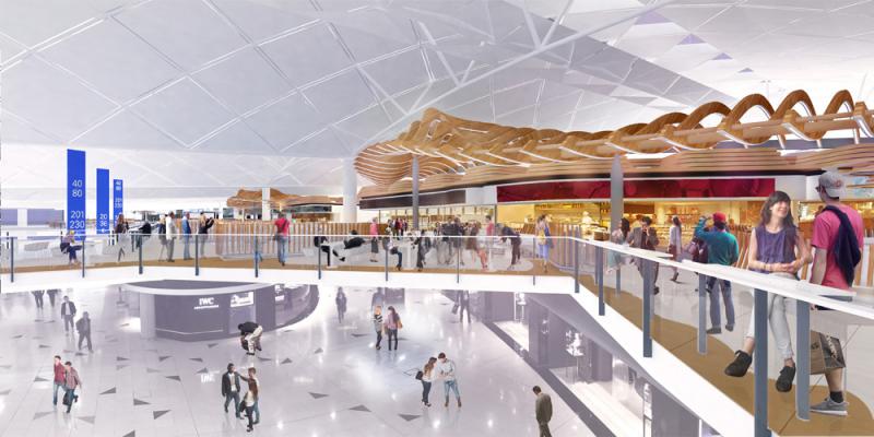 圖:東飲食廣場下月起開始翻新工程,翻新後的東飲食廣場(構想圖)裝修以「獅子山精神」為主題,突顯香港特色\機管局供圖