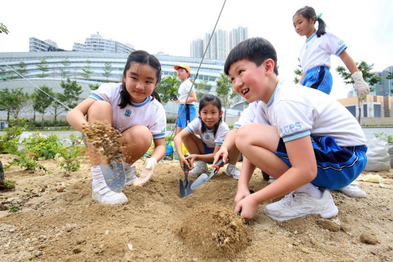 圖:學生植樹期間表現活躍,並表示開心好玩