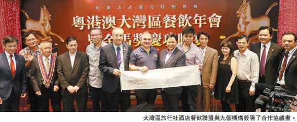 大公網訊 粵港澳大灣區餐飲年會主辦金馬獎慶功晚宴,日前假荃灣半島漁港舉行,主禮嘉賓有立法會旅遊業界議員姚思榮,亞太酒店協會主席冼鋒,中聯辦協調部處長張權、副處長陳隆秀,聯合國開發計劃署官員亞太地區代表林家強等,先後為第18屆中國飯店金馬獎得獎的個人、餐飲機構、供應商頒發獎項。來自粵港澳三地的300多位餐飲同業共聚一堂,同申慶賀,場面熱鬧。