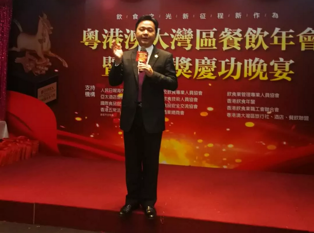 冼鋒代表第18屆中國飯店金馬獎的組委會,向3月23日在海南島獲獎的餐飲企業和廚師祝賀。他感謝周國英的團隊連續8年邀請港澳業界參加金馬獎,共同推動酒店餐飲業的發展,一起打造中國的世界餐飲品牌。