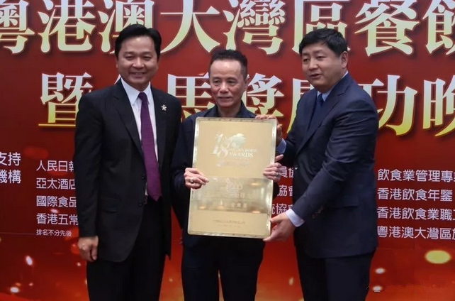 冼鋒(左)頒發「茶餐廳天王至尊大獎」予銀龍飲食集團