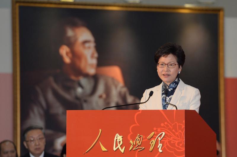 圖:林鄭月娥致辭時表示,周恩來總理的奉獻精神,從政者必須牢記和力行\大公報記者林良堅攝