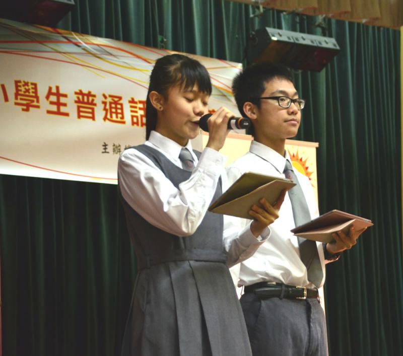 圖:兩位擔任司儀的楊中同學鎮定自若的表現,得到出席老師和家長稱讚