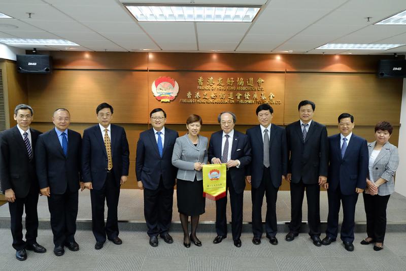 戴德豐向齊靜一行介紹,香港友好協進會是旗幟鮮明的愛國愛港團體,積極貢獻香港和國家。年屆70歲的他說,今次可能是最後一次以會長身份接待,而唐英年剛剛被選為該會新一任會長,他讚揚唐英年是非常適合的、有經驗的會長人選,期望他將該會發揚光大。
