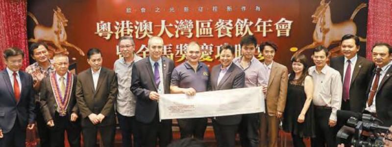 【大公報訊】粵港澳大灣區餐飲年會主辦的金馬獎慶功晚宴,日前在荃灣半島漁港舉行,主禮嘉賓有立法會旅遊業界議員姚思榮,亞太酒店協會主席冼鋒,中聯辦協調部處長張權、副處長陳隆秀,聯合國開發計劃署官員亞太地區代表林家強等,先後為第18屆中國飯店金馬獎得獎的個人、餐飲機構、供應商頒發獎項。來自粵港澳三地的300多位餐飲同業共聚一堂,同申慶賀,場面熱鬧。
