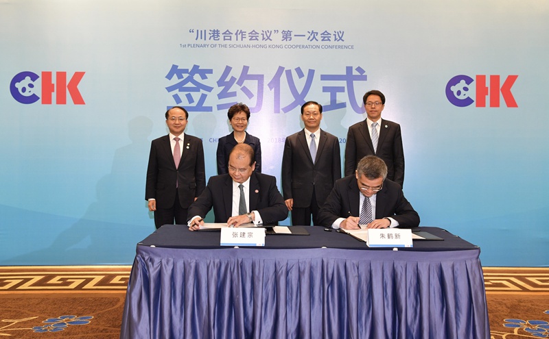 會上,在四川省委書記彭清華、香港特區行政長官林鄭月娥、國務院港澳辦主任張曉明、香港中聯辦主任王志民的見證下,四川省副省長朱鶴新與特區政府政務司司長張建宗代表雙方共同簽署《川港合作會議機制安排》和《川港高層會晤暨川港合作會議第一次會議備忘錄》,就「一帶一路」建設及經貿、文化創意產業、創新及科技、金融、青年發展、建築、教育、中醫葯和食品安全、旅遊、機場及鐵路建設管理、便利港人在內地發展的措施等11個合作領域達成共識。