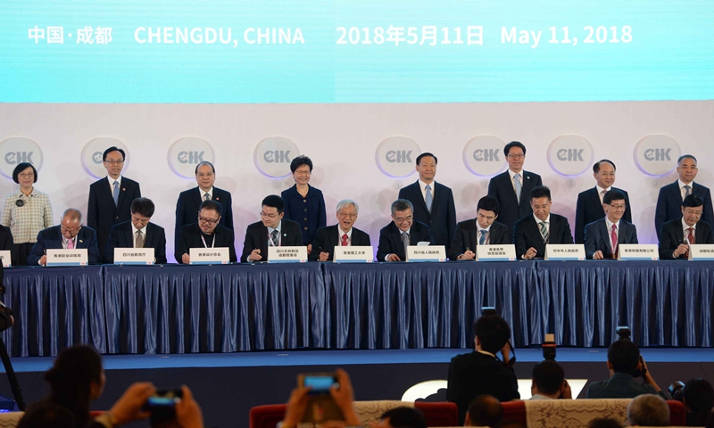 大公網訊 5月11日上午,四川—香港投資與貿易合作交流會在成都舉行。四川省委書記彭清華,香港特區行政長官林鄭月娥,國務院港澳辦主任張曉明及香港中聯辦主任王志民等出席並見證《香港各界扶貧促進會(籌)參與四川巴中南江縣精准扶貧合作備忘錄》簽字儀式。香港各界扶貧促進會(籌)會長蔡加贊和巴中市人民政府副市長克克代表雙方簽署。