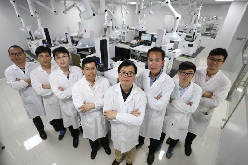 圖:廠商會檢定中心的檢測及業務拓展團隊結合港、粵人才,各司其職。林聖炎(左五)指出,檢測認證可推動國際貿易,左四及左六為謝月亮、Mann