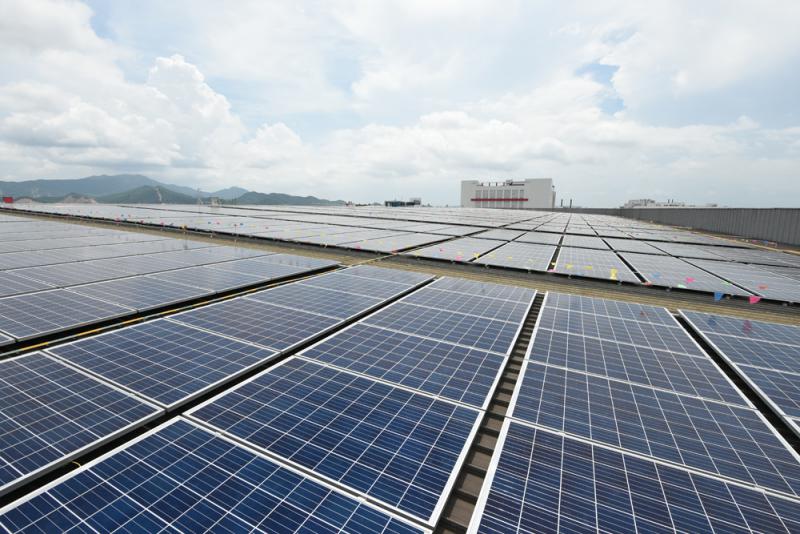 圖:新會李錦記生產基地的倉庫頂裝了太陽能光伏發電系統