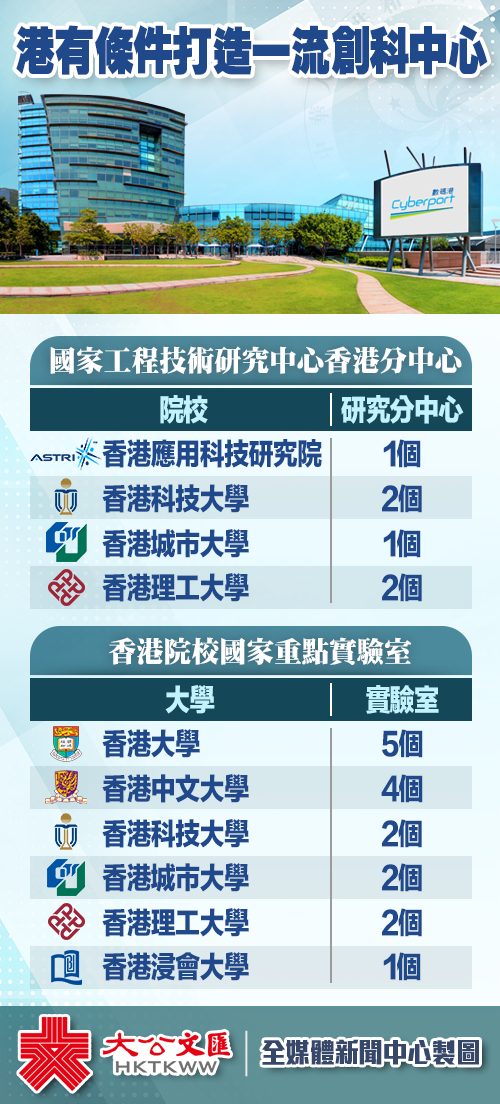 2017年6月,24名在港中國科學院院士、中國工程院院士給中共中央總書記、國家主席、中央軍委主席習近平寫信,表達了報效祖國的迫切願望和發展創新科技的巨大熱情。習近平對此高度重視,指示要促進香港同內地加強科技合作。香港有多個國家工程技術研究中心及國家重點實驗室,具有發展創科的良好條件。這些研究中心和實驗室都位於哪些研究機構,一圖告訴你。