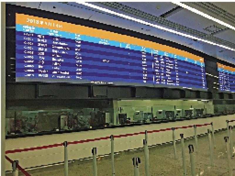 圖:西九龍車站售票櫃位上方設有巨型電子屏幕