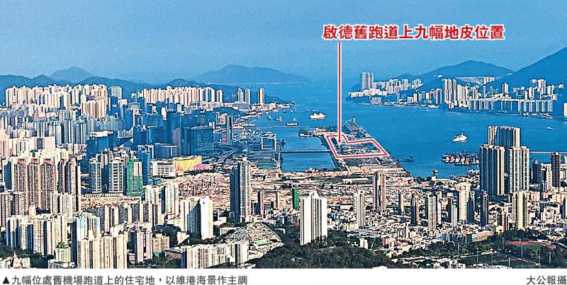 圖:九幅位處舊機場跑道上的住宅地,以維港海景作主調/大公報攝
