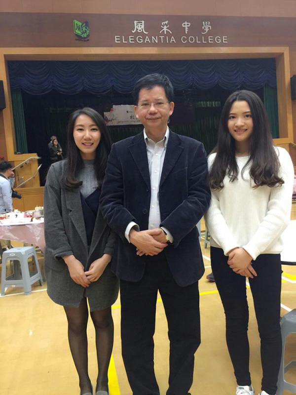 圖:何漢權當年一個取錄決定,讓來自四川的謝茜(左一)和周淳熙(右一)的香港升學夢成真,更闖出一片天