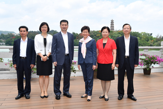 林鄭月娥與劉吉(左三)及其他市領導在會面前合照