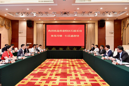 林鄭月娥(右二)16日與惠州市代市長劉吉(左二)會面