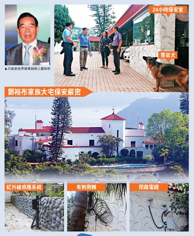 已故新世界發展創辦人鄭裕彤(彤叔),其家族名下的港島淺水灣大宅,昨晨疑被匪徒闖入爆竊,掠走10件金飾及三萬元現金,這是大宅兩年來第二度遭爆竊。大公報記者到場追訪,發現鄭宅和鄰近富豪住宅的保安森嚴,鄭宅更布下五關防盜,仍不敵「蜘蛛大盜」。消息稱,有保安公司已接獲富豪來電,商議加強保衛家園。/大公報記者 周慶邦(文、圖)