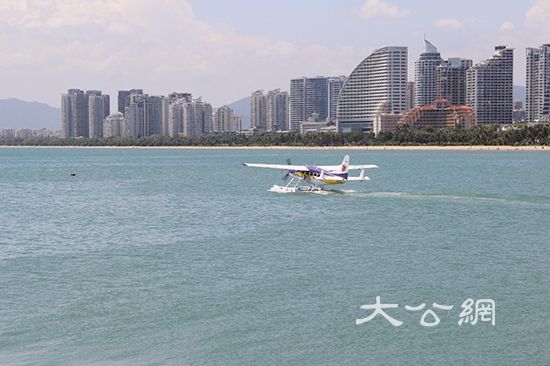 大公網5月21日訊(記者何玫報道)香港媒體採訪團在三亞體驗低空飛行,領海領空,令人印象深刻,水陸兩棲飛機從水上起飛,以不同的視角觀賞三亞灣美景,海天一色,純淨透明,但見街道綠樹成蔭,沙灘上遊客嬉戲戲水。