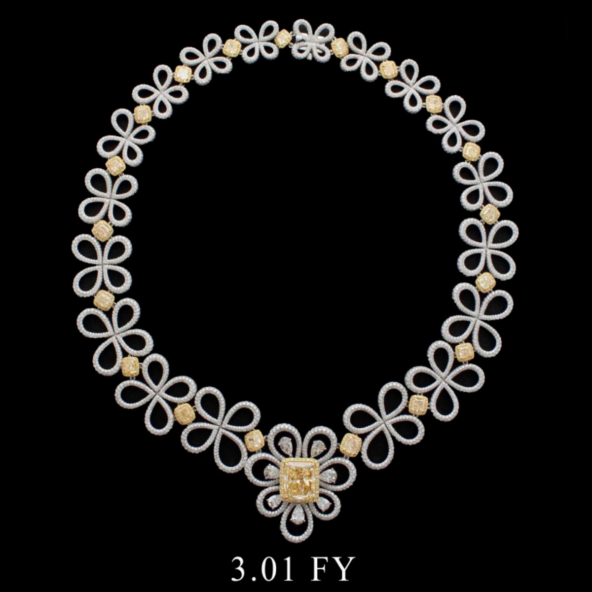 鑽石總重量達43.23卡的四葉草黃鑽白金項鏈(圖片由 Macey & Sons 提供)