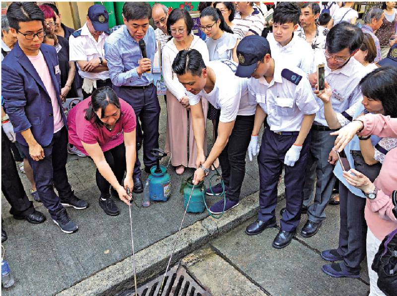 圖:官民一同噴灑蚊油 大公報記者莊恭誠攝