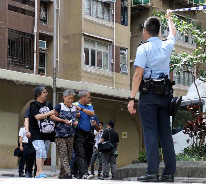 圖:女戶主(左二)驚悉老伴喪生,傷心欲絕,由家人攙扶離開