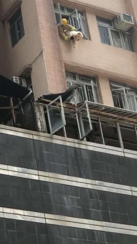 一頭鬆獅狗於昨晨接近11時,被發現卡在上環中源中心五樓一個單位的窗邊,身軀掛在窗花,驚險萬分,不斷哀鳴,驚動途人報警。消防員接報到場,主人剛從外返家,立即開門讓消防員入內,人員先以繩索固定鬆獅狗的位置,小心翼翼地將牠抱入屋內,成功救狗一刻,圍觀市民拍掌歡呼。但鬆獅狗因過度暴曬及中暑,目前情況嚴重。據悉,事發時只有鬆獅狗在家,初步疑牠心繫主人,撲上窗查看期間,後腿意外被卡在窗花。