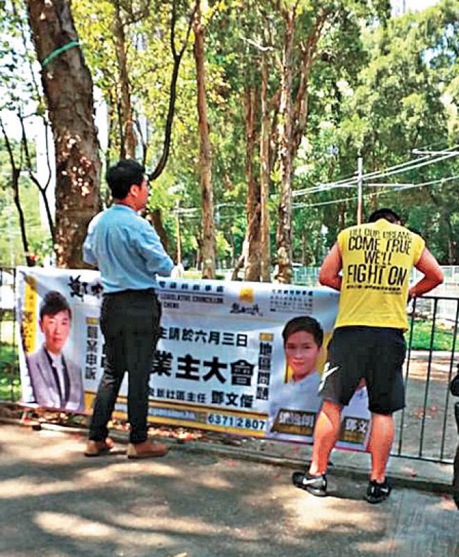圖:熱血公民設於良景區的宣傳橫額,鄧文傑已「插旗」成為良景社區主任