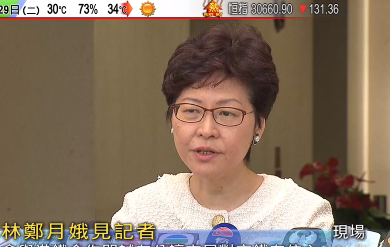林鄭表示,目前財委會等3個小組會期充足,對立法會暑期休會前能通過民生及迫切性項目的撥款很樂觀(電視截圖)