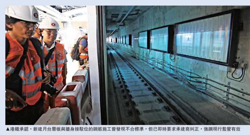 圖:港鐵承認,新建月台層板與牆身接駁位的鋼筋施工曾發現不合標準,但已即時要求承建商糾正,強調現行監管有效