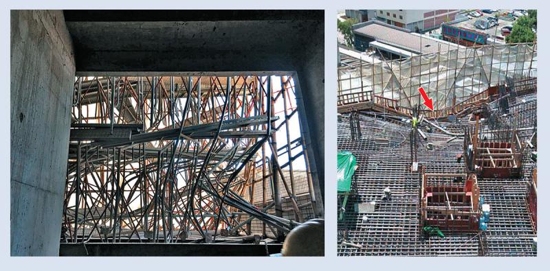 有相片拍得東鐵大圍站上蓋驚現塌鋼筋支架並流出石屎,據悉未有釀成傷亡。港鐵發言人回覆傳媒查詢,確認為大圍站上蓋的發展項目工地。建造業總工會理事長周聯僑指,為免發生類似意外,在架設金屬棚架(俗稱格子棚)時,應多落些「鉸剪」或是六至八米橫鐵通,用鎖頭鎖於腰部及棚架腳部分,以增加支撐力。