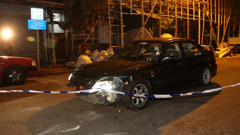 圖:報稱被偷的私家車車頭撞毀,被棄街上