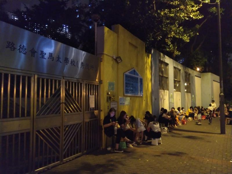 圖:昨晚九時已有超過70名家長於路德會聖馬太學校(秀茂坪)排隊\大公報記者楊綺青攝