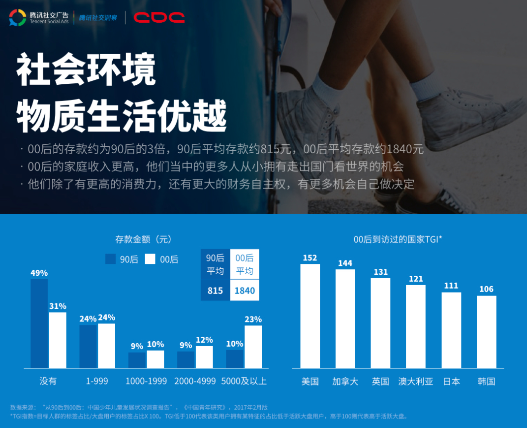 報告指出,相較於「90後」,「00後」的家庭收入更高,且當中有不少人從小就有出國經歷。「00後」有更大的財務自主,習慣自己做決定,對自我的認知較強。消費觀方面,00後也較為理性,有84%的調查對象表示不會消費超出自己能力範圍的東西。