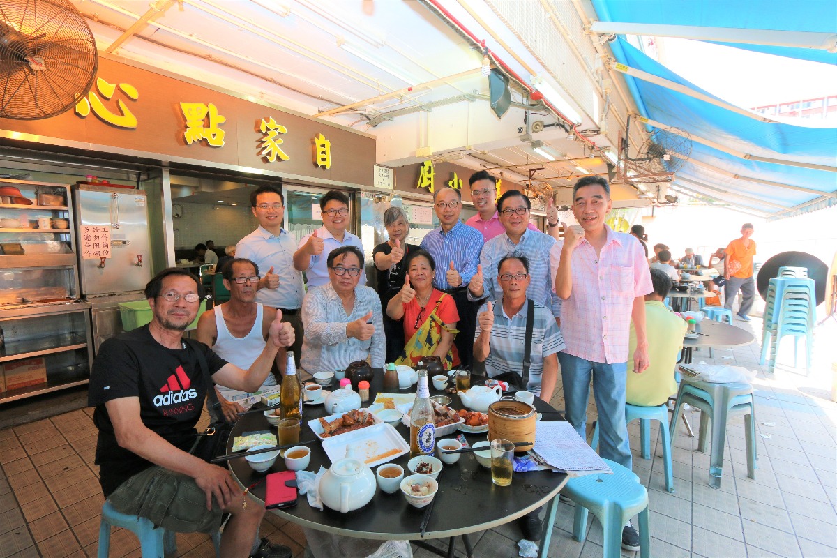 大公網6月3日訊(記者 龔學鳴)運輸及房屋局局長陳帆,今日居然與經民聯主席盧偉國,以及副主席林健鋒一起在石硤尾邨飲早茶,還品嚐馳名雞扎和鵪鶉蛋燒賣。到底所謂何事呢? 原來,經民聯與陳帆今日一起到石硤尾邨實地視察,經民聯亦趁機表達石硤尾邨居民要求「重建屋邨,原區安置」的期望。