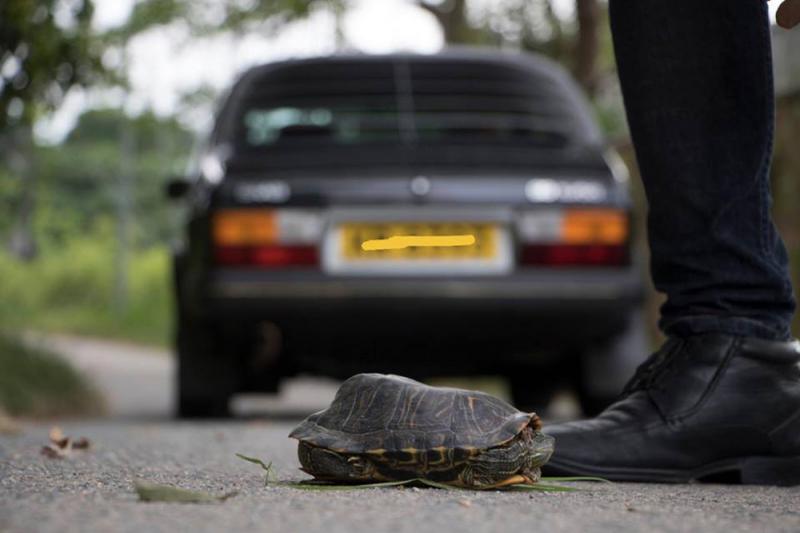 生命無分大小,駕車人士除了要小心路人、路面情況外,還要留意路上的小動物……包括烏龜。有司機日前在新界南涌馬路上見到一隻烏龜,馬上剎停,還下車拾起烏龜,放到湖邊草叢,並於網上帖文笑稱「避龜,真係第一次!」此po獲得不少網民讚好,有網民留言大讚「係愛呀」、「好人有好報」,還說「咁有緣拎返去養。」