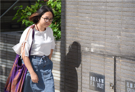 三名助理之一、被告鍾雪瑩早上到香港九龍城裁判法院應訊(圖片來源:香港中通社)
