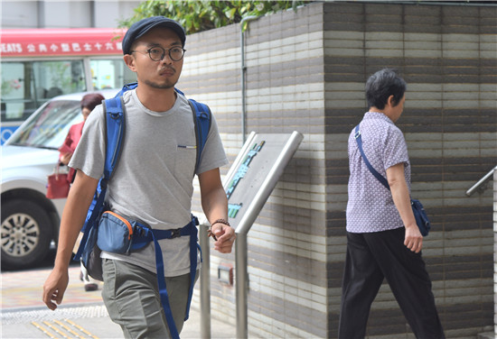 三名助理之一、被告張子龍早上到香港九龍城裁判法院應訊(圖片來源:香港中通社)
