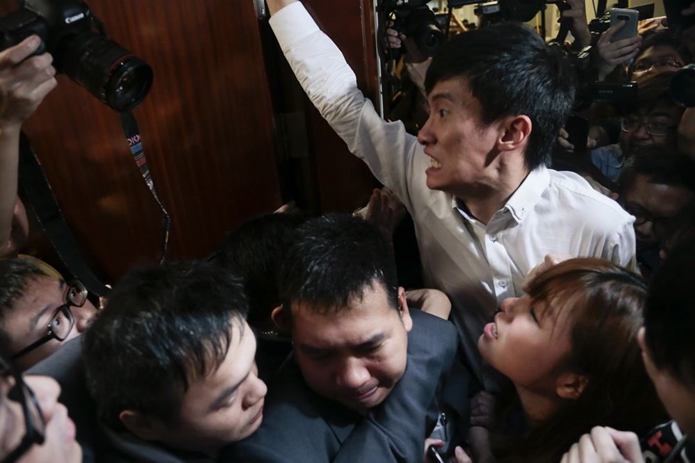梁頌恆游蕙禎及3名助理非法集結罪成,囚4星期。圖為前年梁游衝擊立法會會議室資料圖