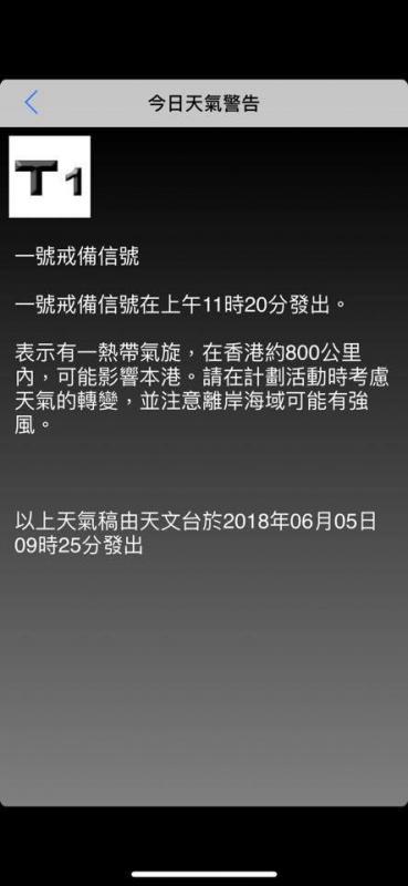 圖:原定昨晨11時20分發出一號波,但天文台訊息顯示9時25分「一號波」已發出