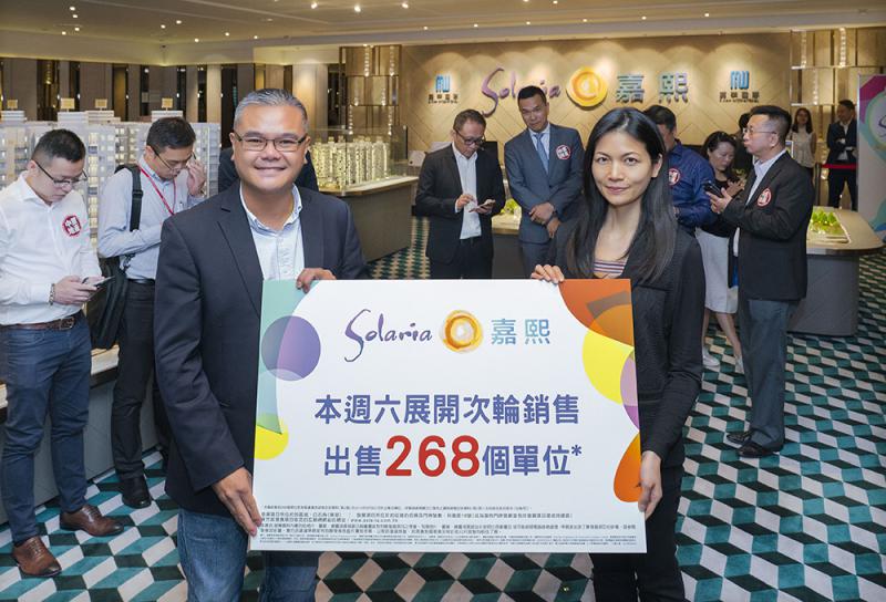 圖:溫偉明(前左)指,嘉熙周六次輪出擊,旁為市場策劃助理總經理(香港地產)吳秀賢