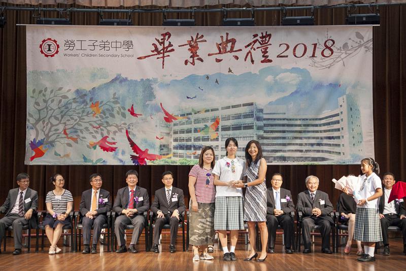 圖:勞工子弟中學中六畢業禮,香港科技大學副校長林文怡教授(右一)嘉許模範生陳楚君
