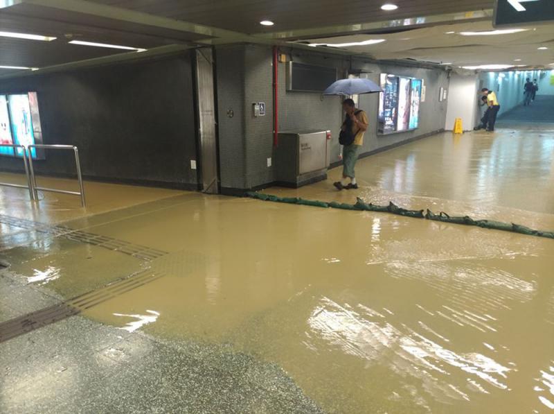圖:港鐵鑽石山站一個入口,被地盤黃泥水倒灌頓成澤國\網上圖片