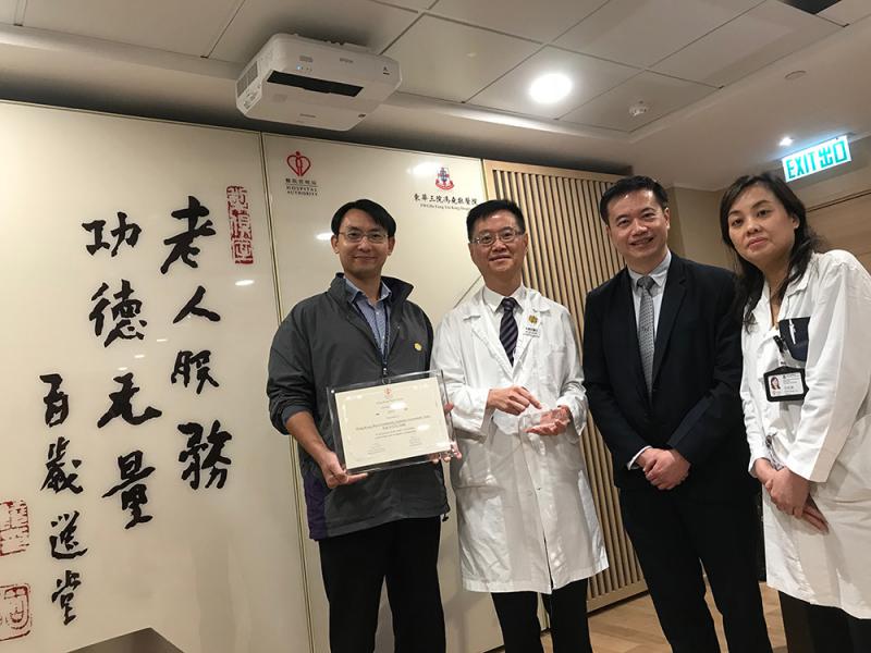 圖:東華三院馮敬堯醫院內科部門主管陸嘉熙(左二)表示,截至二○一五年已服務七十多名長者\大公報記者朱樂怡攝