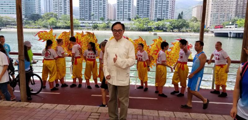 圖:經民聯主席、工程界立法會議員盧偉國(WK),昨早出席沙田龍舟競賽點睛儀式「唱龍舟」