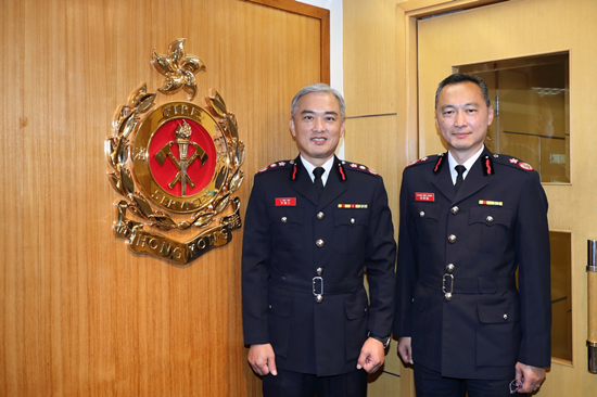 圖: 李建日(左)退休後將由梁偉雄接任消防處處長。(消防處提供資料圖片)