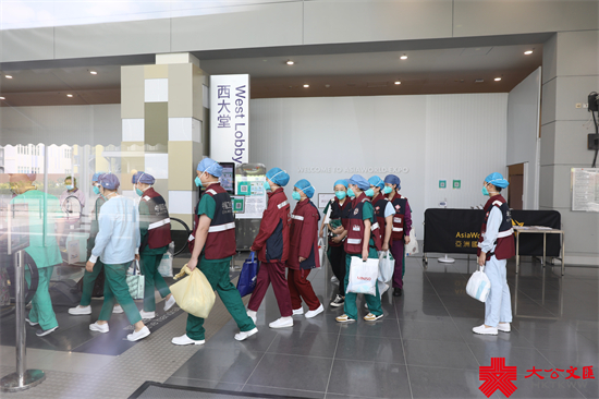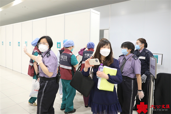 內地醫護到亞博館社區治療設施救治新冠患者。(大公文匯全媒體記者李斯哲攝)