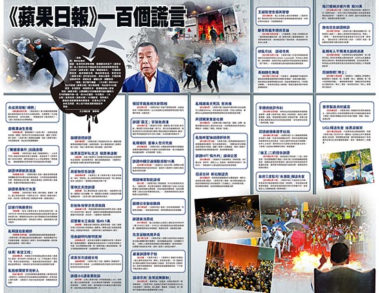 《蘋果日報》在修例風波期間,以「反送中」描述《逃犯(修訂)條例》,製造謊言,煽動市民仇恨情緒,炮製大量反中亂港輿論。